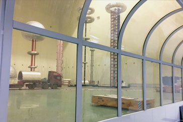 高壓局放試驗大廳控制室可采用我單位設(shè)計的曲面觀察窗,樣式美觀,觀察范圍無任何死角